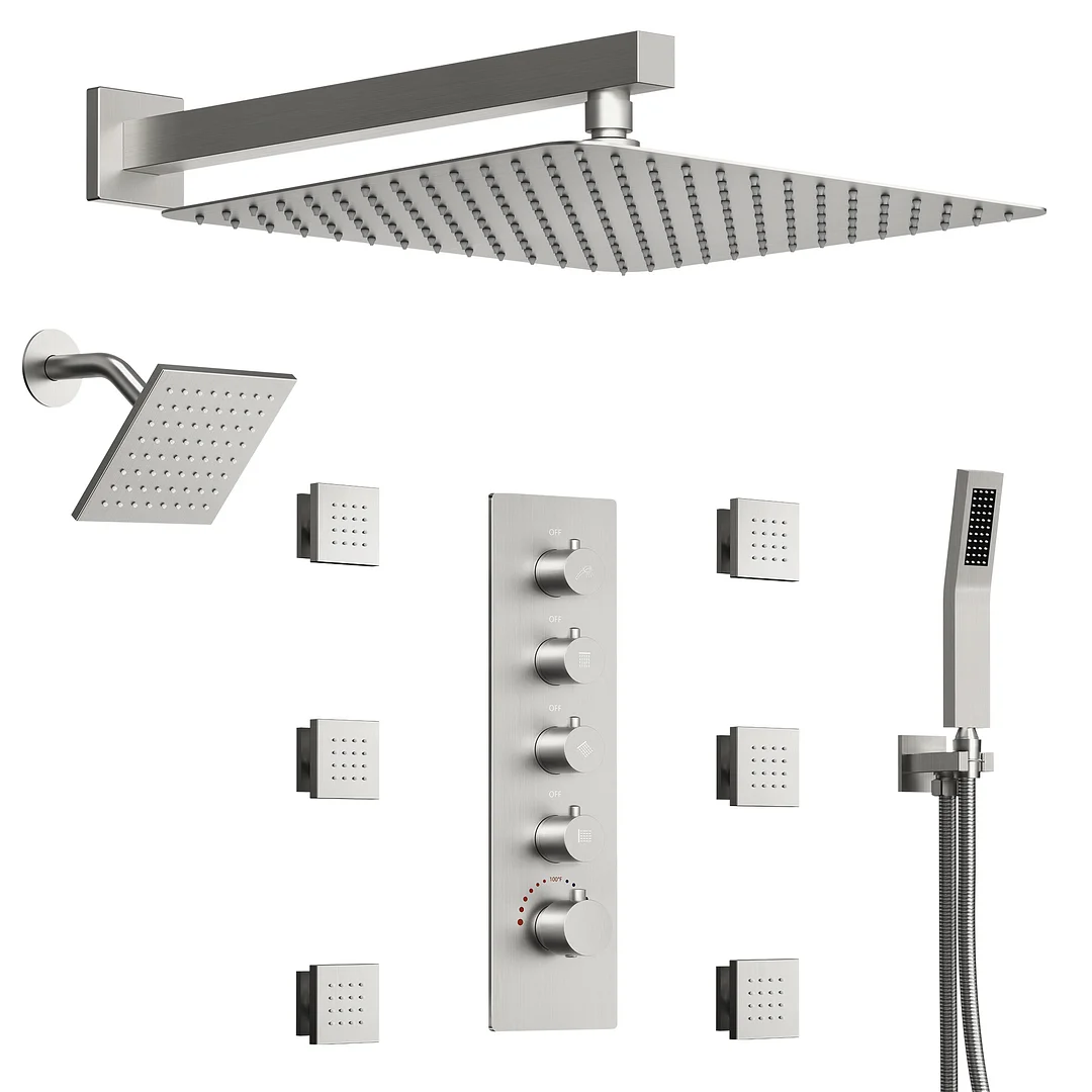 • Premium Construction: Made from high-quality stainless steel, the shower heads and handheld units offer durability, rust resistance, and a sleek appearance, complemented by a sturdy copper main body for stability and longevity.