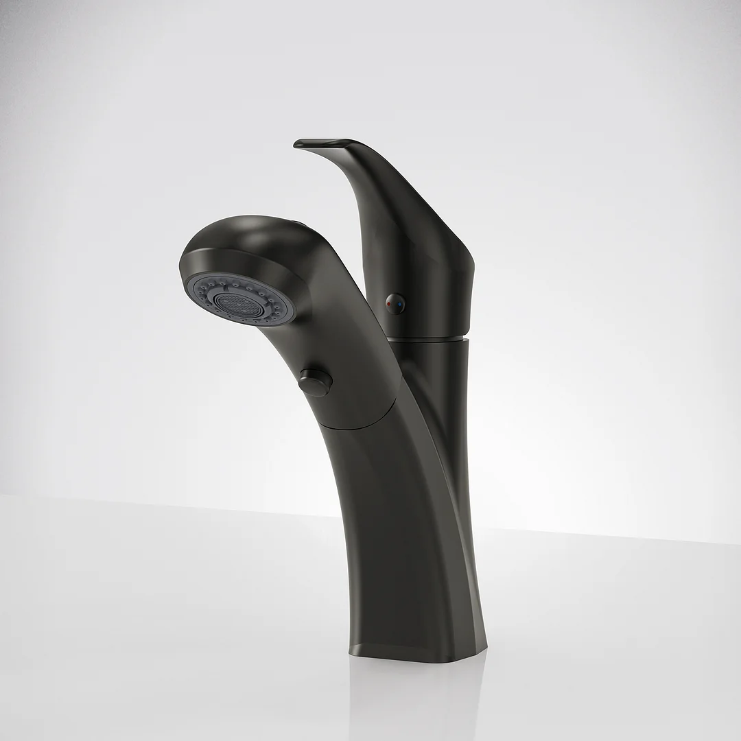 A sculpted, pull-out bathroom faucet designed for everyday flexibility. Featuring smooth single-handle control, a refined finish, and a retractable spray head, it brings quiet elegance and added convenience to modern bathroom spaces.