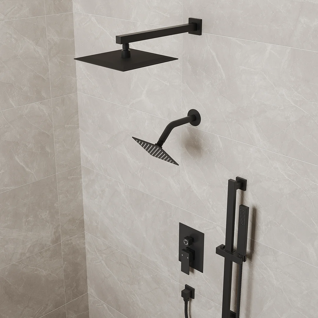 10 Inch Ultra-thin Rainfall Shower HeadIndulge in a spa-like shower experience with the 10 in ultra-thin rainfall shower head. Or choose a 6-inch wall shower head to create a massage experience at different angles. Its wide coverage envelops you in a soothing downpour, while the 360° adjustability allows you to find the perfect angle for ultimate relaxation and comfort.