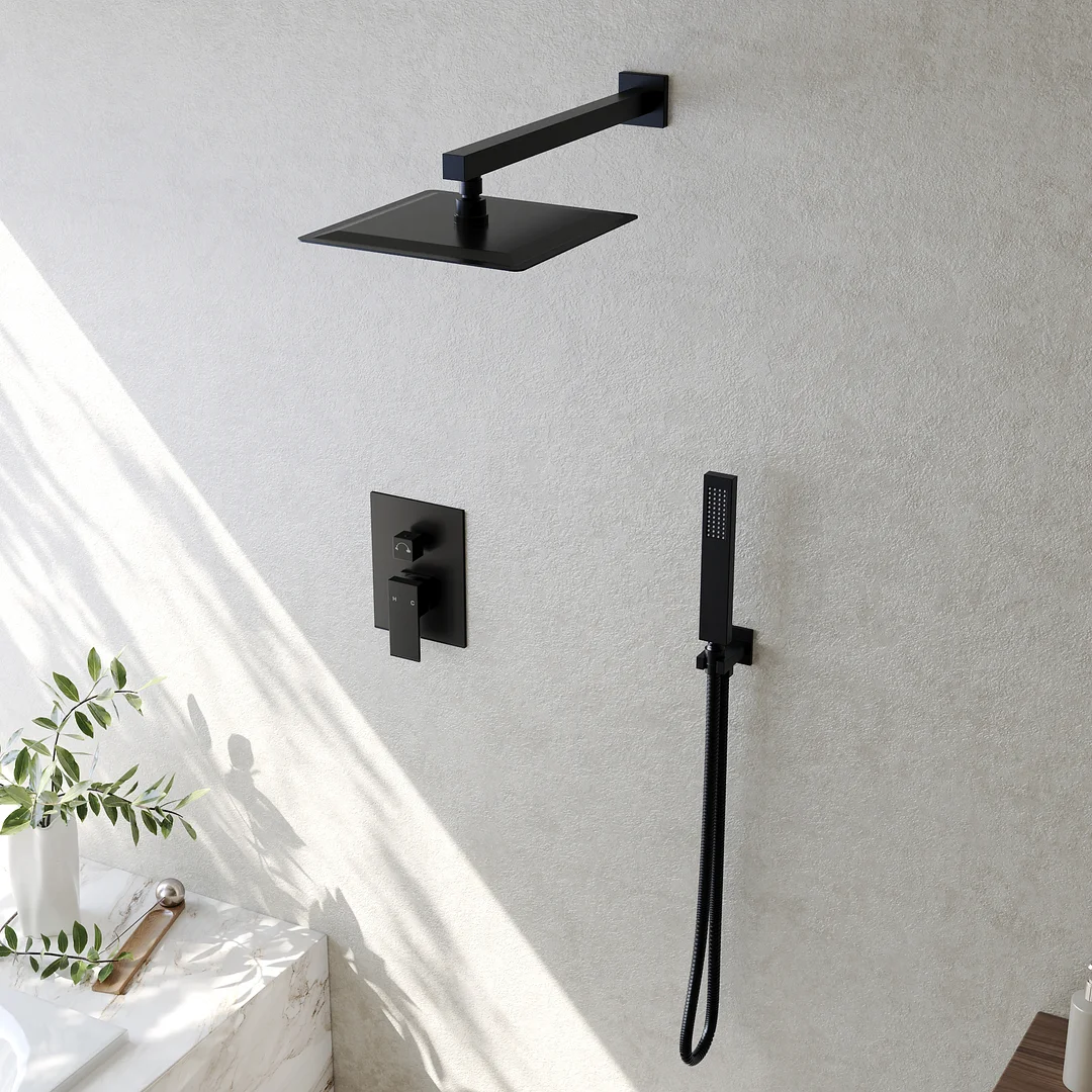 The Matte Black EVERSTEIN Rainfall Shower System comes with a handheld sprayer for your spa-like bathing experience. It's equipped with a pressure balance shower valve, an anti-scald shower system, an ultra-thin rainfall shower head, and a flexible hand shower, offering safety, performance, and modern elegance for today's bathrooms.