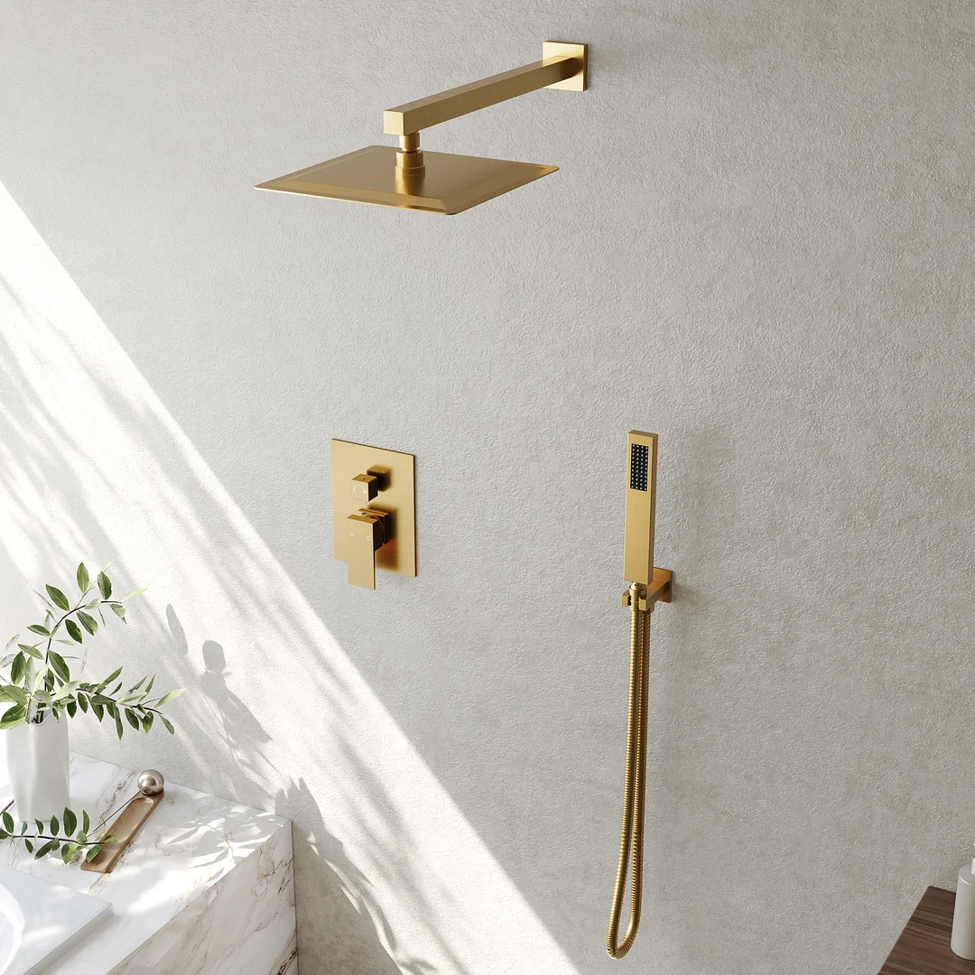 Multiple-Function: Comes with a wall-mount rainfall shower head, a hand shower, and a pressure-balanced valve, preventing sudden temperature changes and eliminating water hammer for a safe experience. Ideal for family use, such as targeted rinsing, children, and pets.