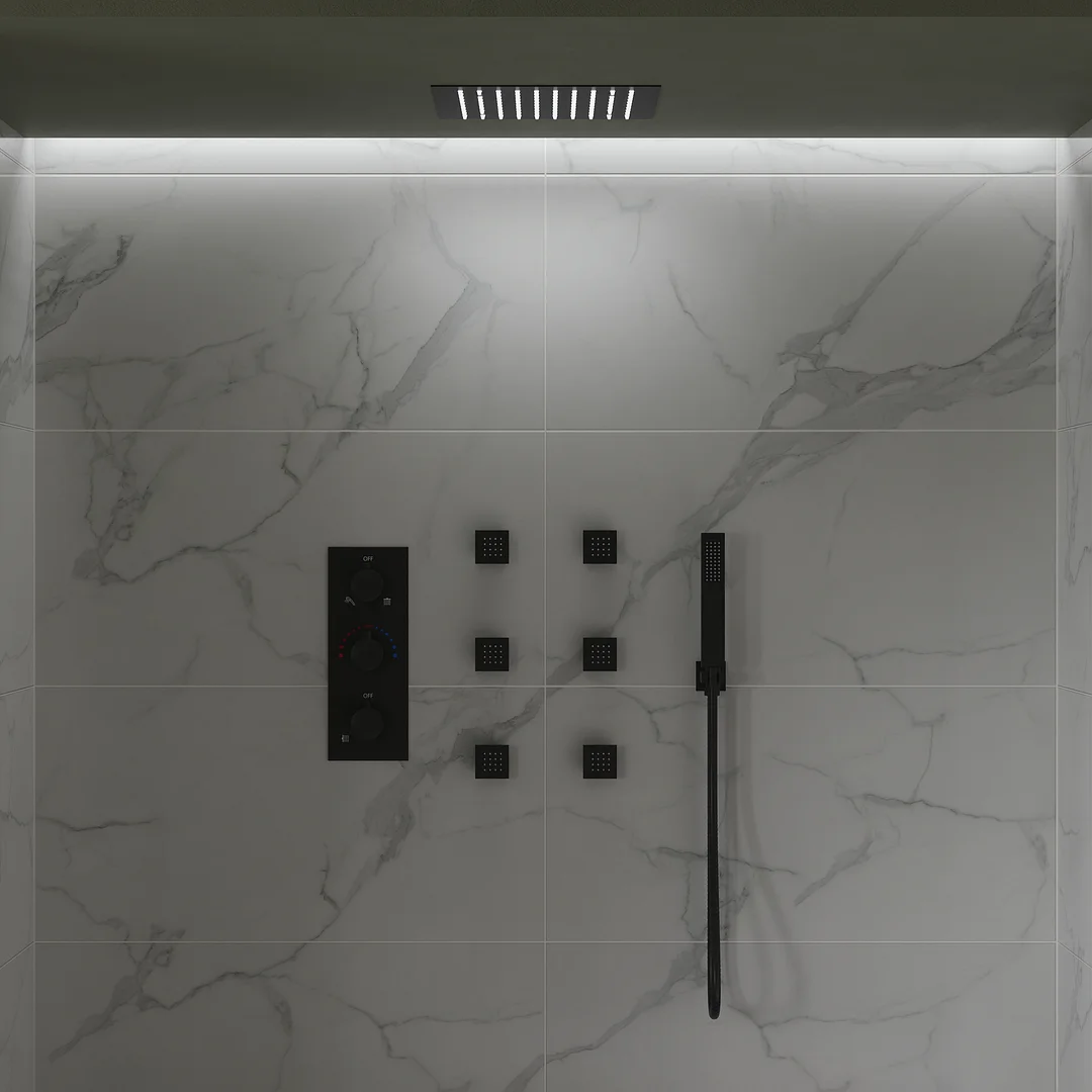 EVERSTEIN Ceiling Mounted Luxury Rainfall Shower System in Matte Black M6378BLI