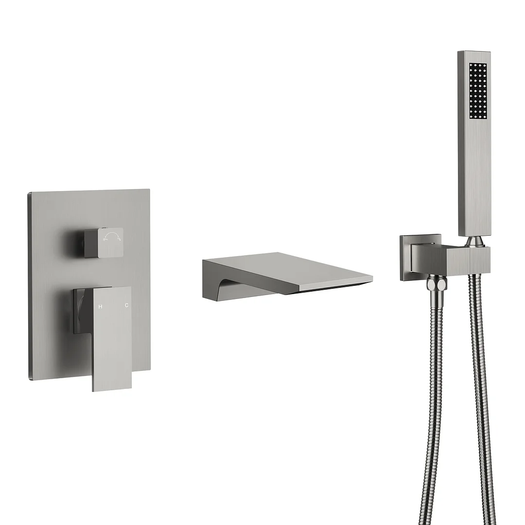 This bathtub faucet set is primarily made from solid brass and stainless steel, which is built to last. The stylish brushed nickel appearance adopts advanced plating technology, resistant to fingerprint marks, tarnish, and corrosion.