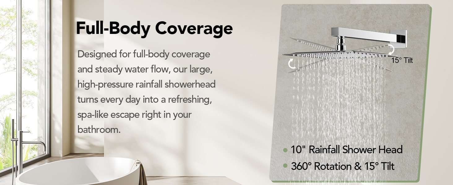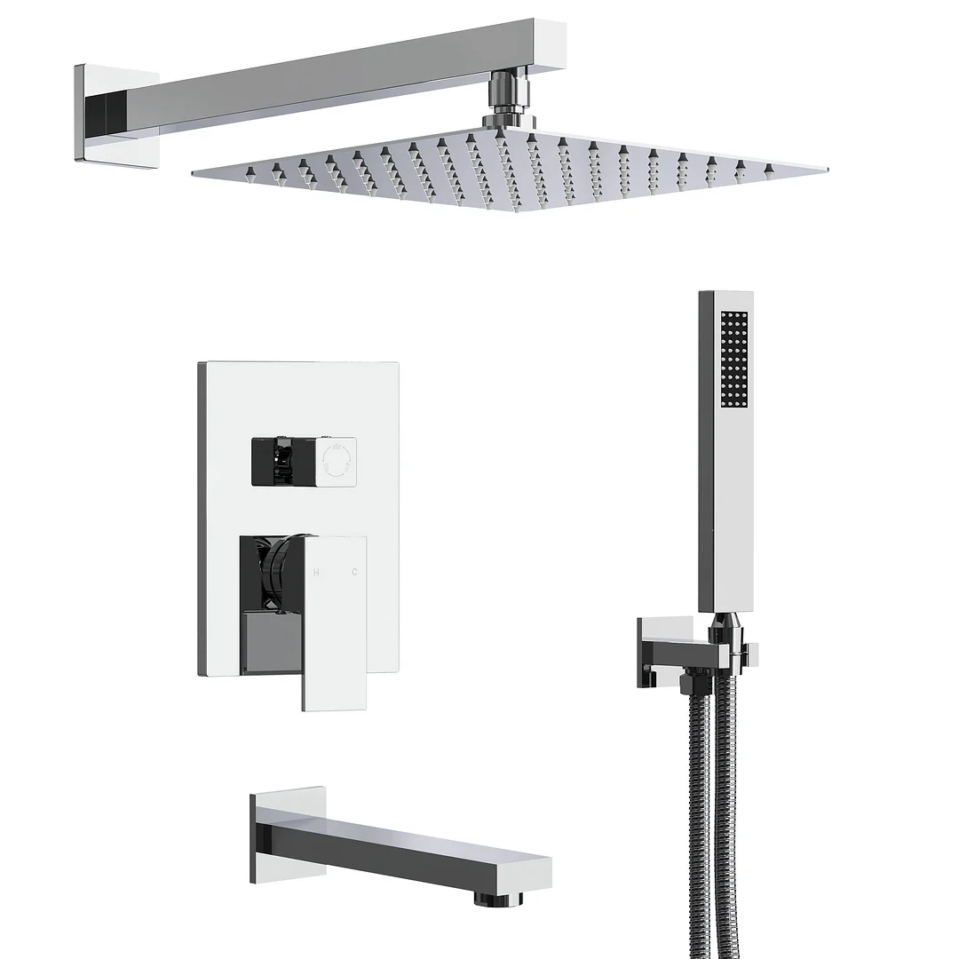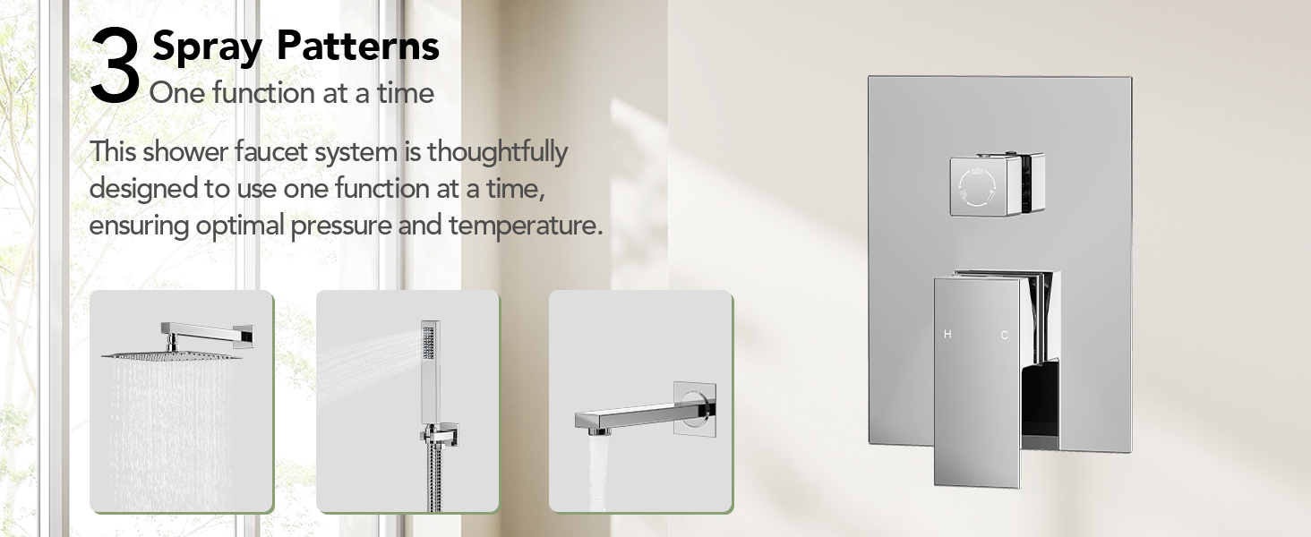 This wall-mounted 3-function single shower rain system is made of brass, and the square stainless steel shower has a high-level appearance and long-lasting durability. CUPC-certified valve. The whole set of shower systems will bring you an advanced shower experience and wash away all-day fatigue.