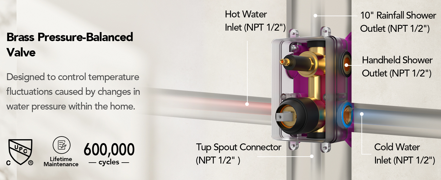 • Premium brass pressure-balanced shower valve