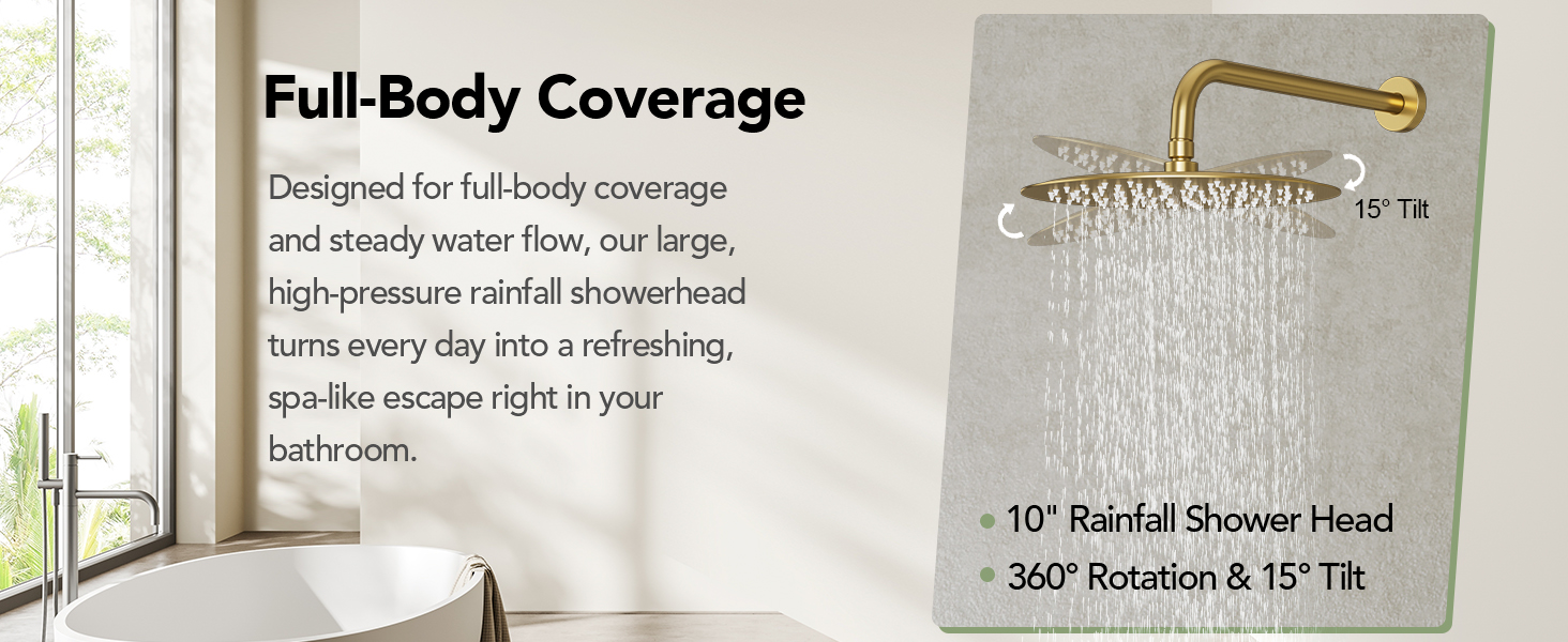 Luxury 10" Round Rain Shower Head with Hand Shower & Bathtub Spout