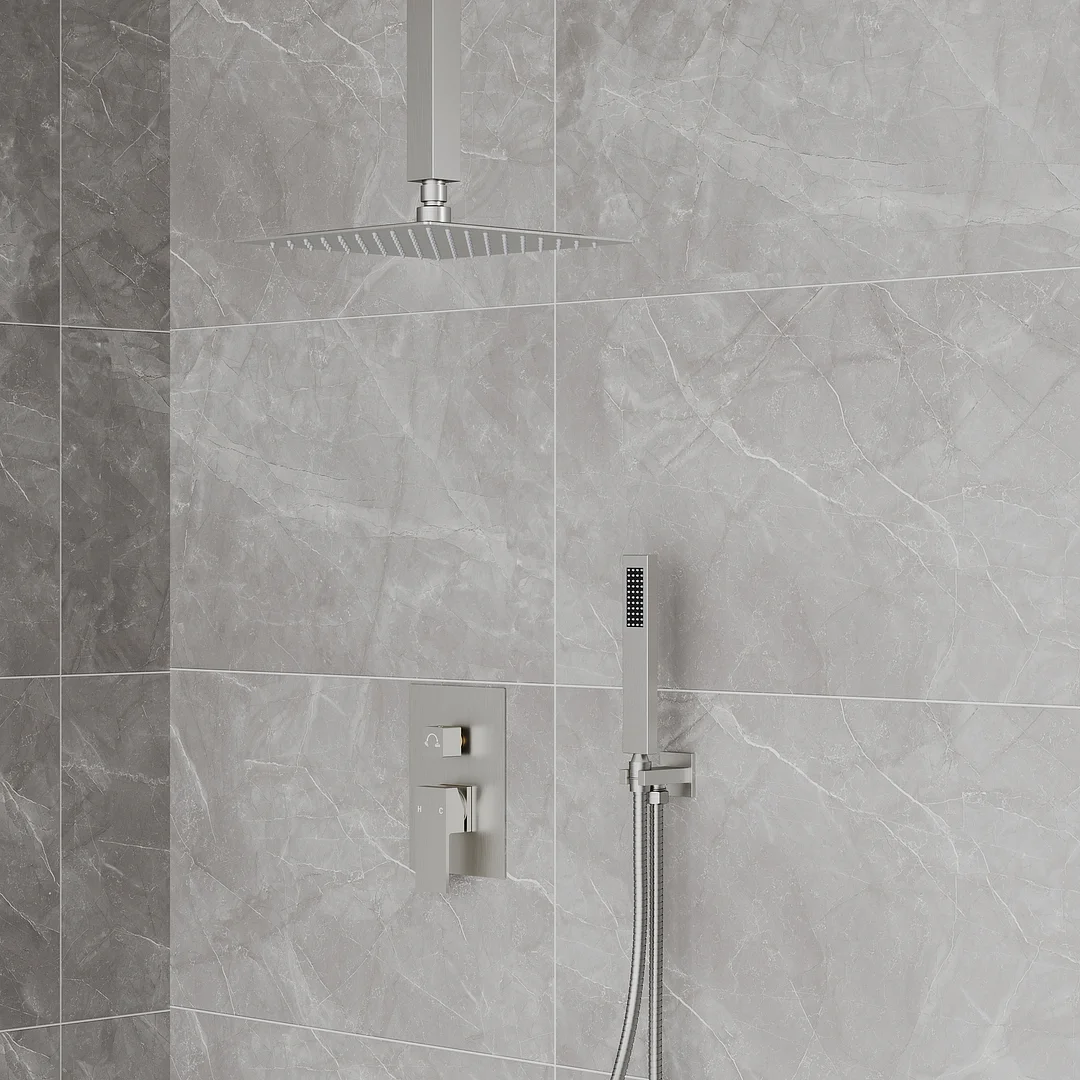 Why choose us? We'll impress you! 1. Our pressure-balanced valve rain shower system eliminates water hammer noise & prevents scalding due to sudden temperature changes. 2. Our product has undergone 600,000 tests, ensuring reliable durability & longevity. 3. We offer a lifetime warranty with free repair or replacement and 24-hour customer service for consumer satisfaction. 4. Our Everstein shower system is easy to install, cups certified, and complies with ASME a112.18.1-2018/CSA b125.1-18 standards. 5. Our brushed nickel finish resists corrosion, maintains its shine even in damp environments and provides a modern appearance for bathrooms and walk-in showers. 6. The 12-inch ultra-thin shower head uses air pressure boosting technology to provide high-pressure water flow while saving up to 50% of water. 7. Our extra-long hose hand shower with a silicone nozzle is flexible and easy to clean, wipes away mineral deposits with just a swipe of a finger,ideal for specific areas, children, and pets. 8. Our ultra-thin overhead rainfall shower head provides extensive coverage and a soothing downpour shower experience with 360° adjustability. 9. Our multifunctional shower system combines a shower head and handheld shower for a versatile and enjoyable shower experience.