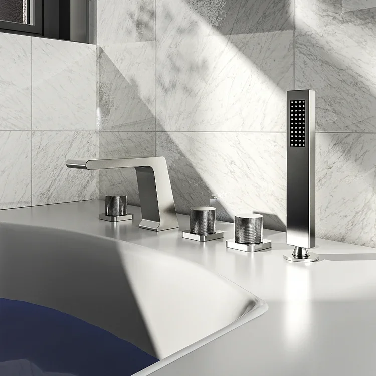 EVERSTEIN bathtub faucet is a perfect complement to your bathroom decoration. With the main body built from solid brass and handles built from zinc alloy, it is long-lasting for daily use and resistant to fingerprint marks, tarnish, and corrosion. The widespread spout creates a mini waterfall effect, performing with less noise and no splashing. The simplistic design and smooth will give your bathroom an elegant look.